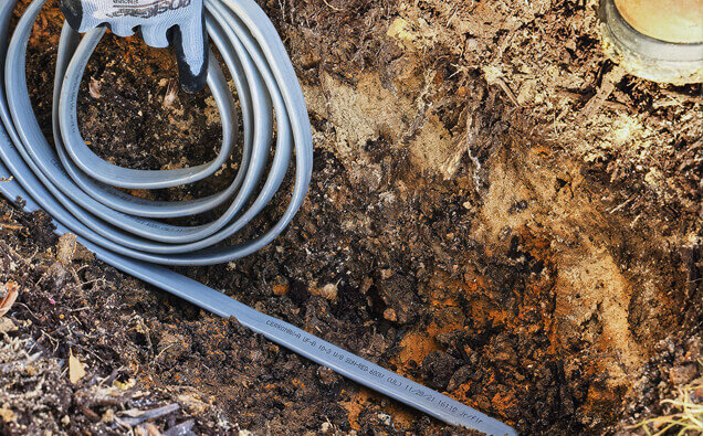 Professional installation of underground consumer mains from the point of supply to your switchboard using high-quality XLPE or SDI cables in heavy-duty conduit with warning tape.