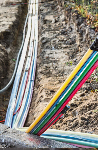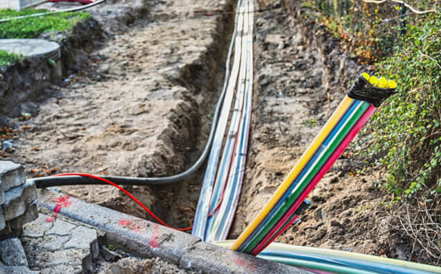 Expert installation of mains cabling from network pillars to metre boxes with correct segregation, depth, and protection in accordance with distributor regulations and safety standards.